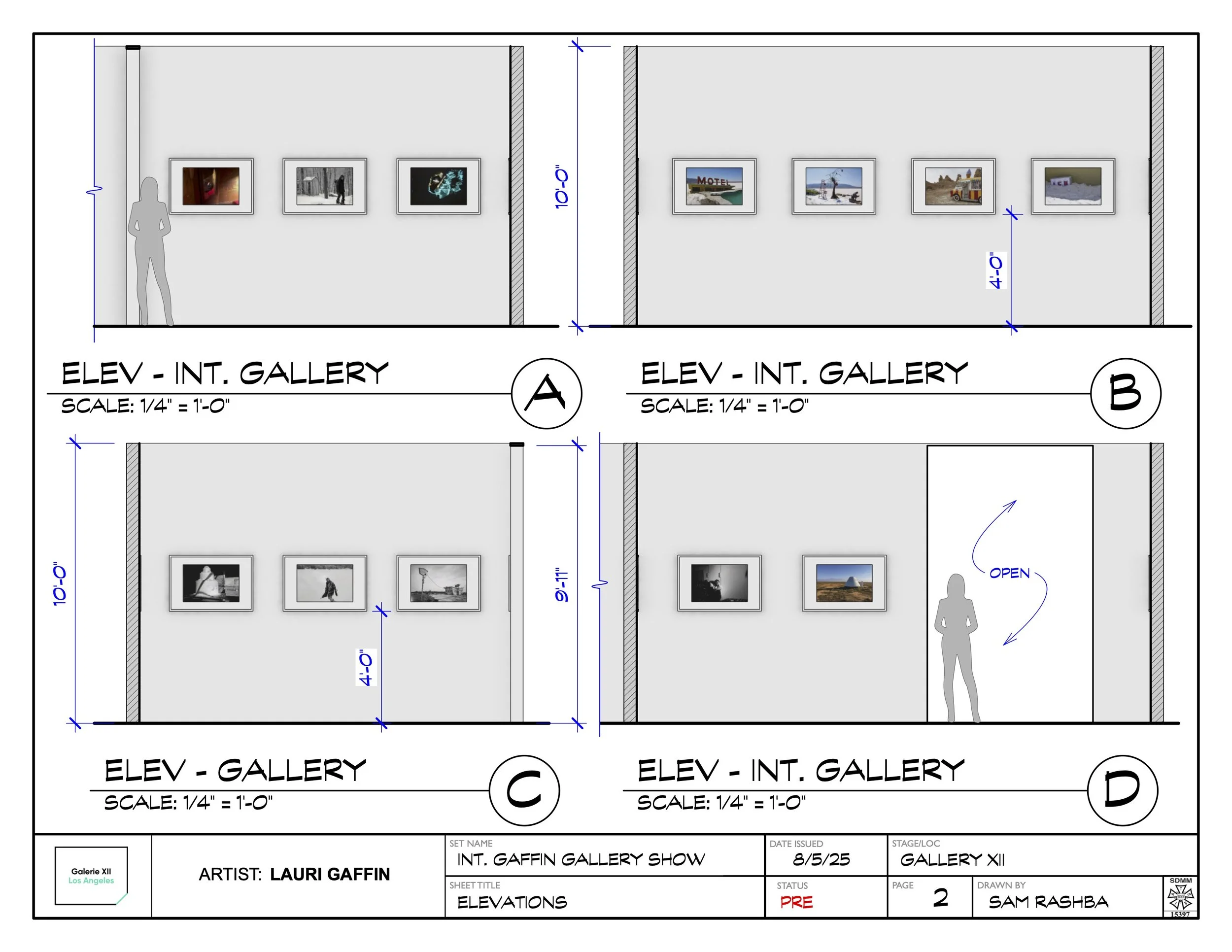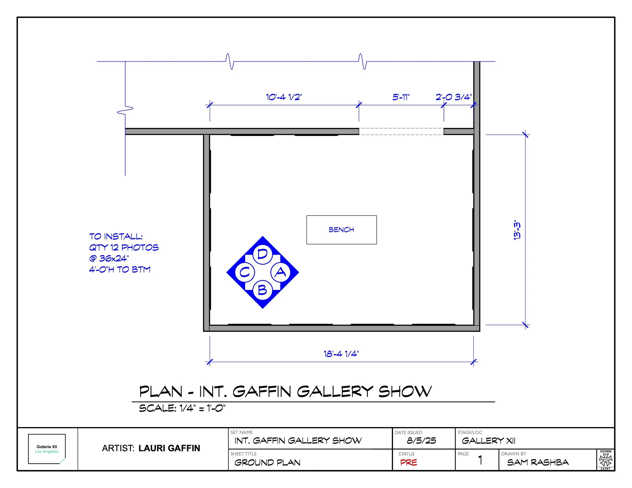 Layout for photographer Lauri Gaffin for her 2025 installation at Gallery XII in Los Angeles, CA. Drafting done in Vectorworks.